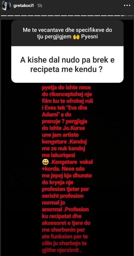 E pyesin a do të dilte lakuriq në skenë, kështu përgjigjet Greta Koçi