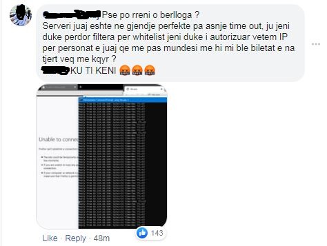 Por duket se përgjigja e tij ishte pëlqyer nga shumë qytetar, dhe ”tiks.app” hyri në panik duke fshirë komentin brenda një ore.