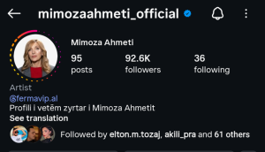 Para fillimit të transmetimit të Prime-t, llogaria e saj zyrtare në Instagram numëronte rreth 88 mijë ndjekës. Por, vetëm disa orë pas përfundimit të spektaklit, situata ka ndryshuar tërësisht. Siç shihet qartë edhe nga screenshot-i i profilit të saj, shifra e ndjekësve ka “fluturuar”, duke arritur në plot 92.6 mijë ndjekës.