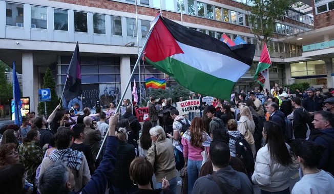 Protestuesit në Serbi u mblodhën ditën e djeshme jashtë transmetuesit shtetëror serb RTS për të kërkuar që vendi ballkanik të tërhiqet nga Festivali i Këngës në Eurovision i këtij viti për shkak të pjesëmarrjes së Izraelit.