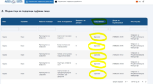 Në pjesën e deklarimeve nga të punësuarit janë raportuar 12 raste. Një udhëheqës sektori në Drejtorinë për Zonat e Zhvillimit Teknologjik Industrial ka deklaruar si dhuratë verë “KARTAL VRANEC” 0.75 l, fletore dhe mauspad me logo të dhuruesit, ndërsa një këshilltar në Avokat i Popullit ka deklaruar një libër me vlerë 300 denarë.