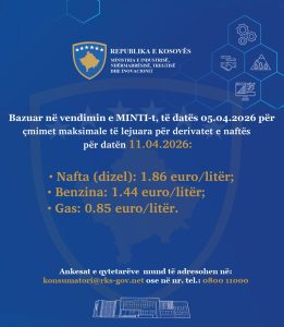 OPATIJA, 08. 03. 2011. - BENZIN, BENZINSKA STANICA, NAFTA, PUMPA, POSKUPLJENJE, CIJENA, TANK, TANKANJE, 10 KN, INA SNIMIO: VEDRAN KARUZA Kosove 1.86 nafta, 1.44 benzina dhe 0.85 euro gasi për litër, çmimet tavan të derivateve për sot Nga admin14 Me Apr 11, 2026 64 Ndaj FacebookTwitterGoogle+Email Ministria e Industrisë, Ndërmarrësisë dhe Tregtisë (MINT) ka publikuar çmimet tavan të derivateve për ditën e sotme në Kosovë. Një litër naftë mund të shitet deri në 1.86 euro, benzina 1.44 dhe gasi 0.85.