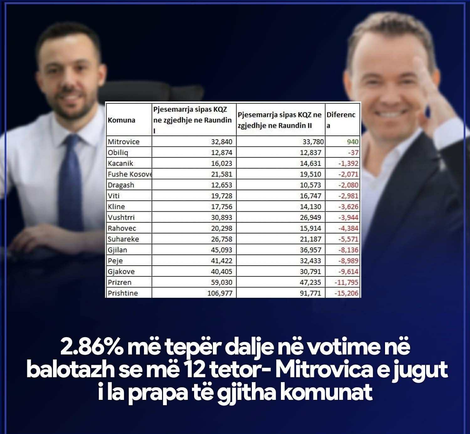Në këtë komunë, Komisioni Qendror i Zgjedhjeve (KQZ) regjistroi një rritje prej 940 votuesish krahasuar me raundin e parë – një devijim i pazakontë në raport me rëniet masive të pjesëmarrjes në Prishtinë, Prizren apo Gjakovë.