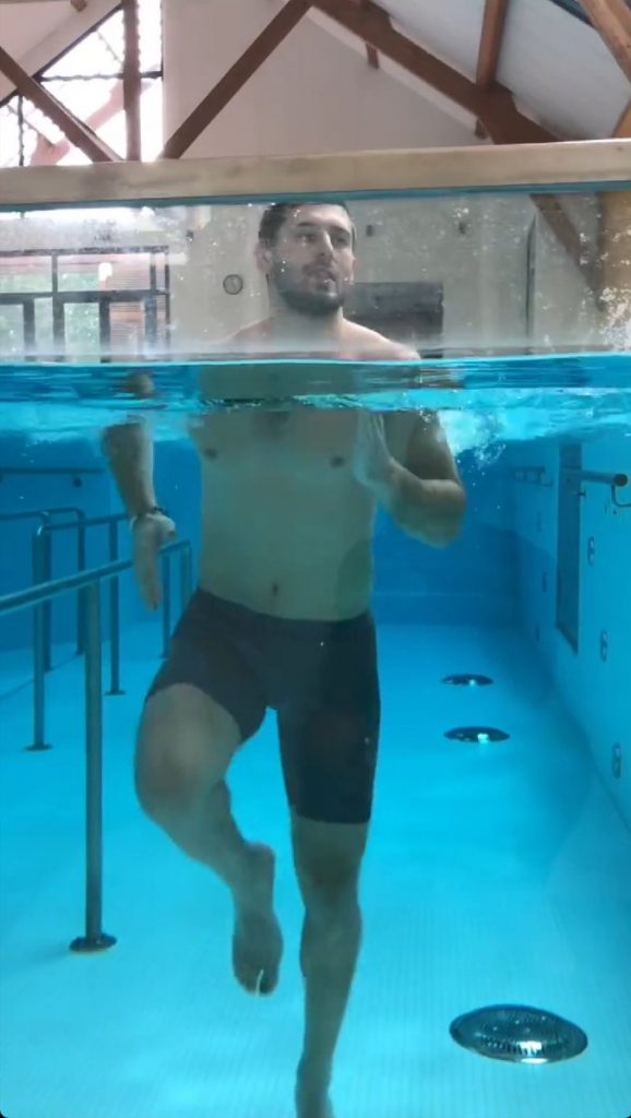 Zeneli shihet teksa stërvitet nën ujë, duke bërë progres të madh drejt rikuperimit nga lëndimi i tmerrshëm që pësoi.