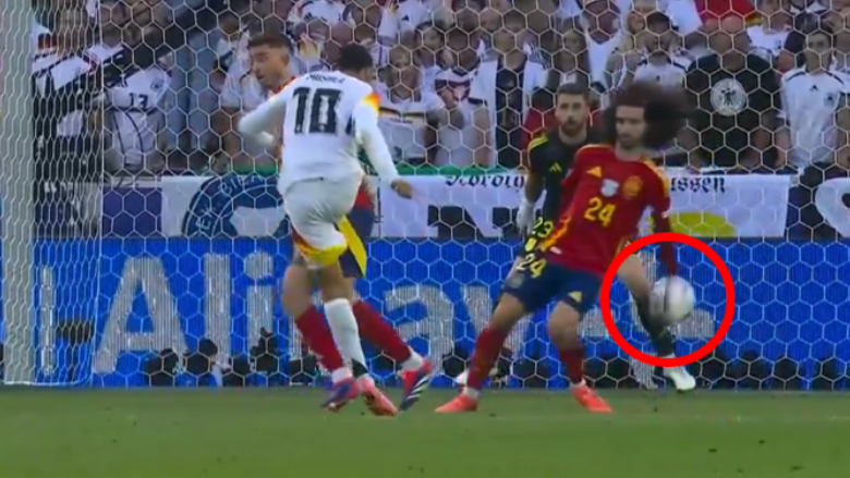 Në pjesën e dytë të vazhdimeve ishte momenti më kontrovers, kur topi goditi dorën e Marc Cucurella pas një gjuajtje nga Musiala brenda zonës .