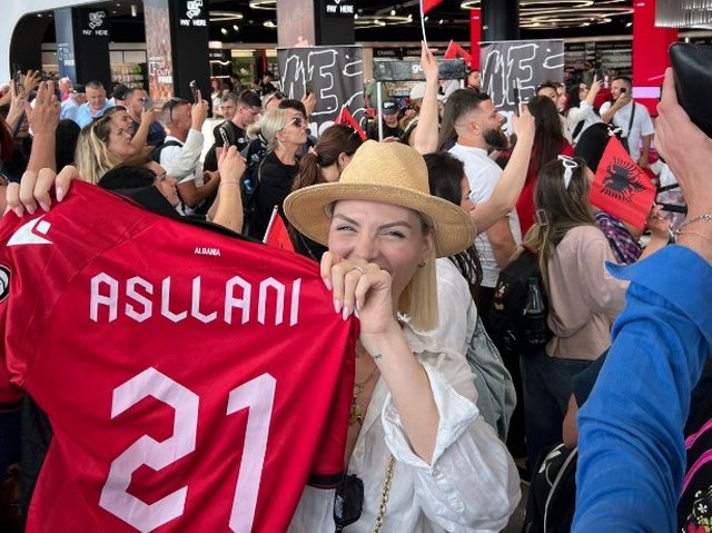 Tifozët e skuadrës tonë kombëtare që fluturuan sot drejt Gjermanisë për të mbështetur Shqipërinë në Euro2024, u përcollen me një atmosferë festive nga Aeroporti Ndërkombëtar i Tiranës.