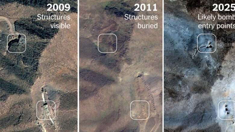 Imazhet e 29 qershorit tregojnë një ekskavator dhe një vinç në majë të një rruge hyrëse, të sapo ndërtuar pranë një zone të synuar nga bombat amerikane që shkatërrojnë bunkerët. Më poshtë në shpatin e malit, një buldozer dhe një kamion janë të dukshëm.