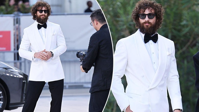 Në tapetin e kuq, ai mbante veshur një kombinim elegant të një xhakete të bardhë, pantallonave të zeza dhe një papioni, por ishin mustaqet, mjekra dhe flokët e gjatë e kaçurrela të reja që tërhoqën më shumë vëmendjen e publikut. Komente të shumta u shfaqën në rrjetet sociale, me shumë fansa që pranuan se pothuajse nuk e njohën.