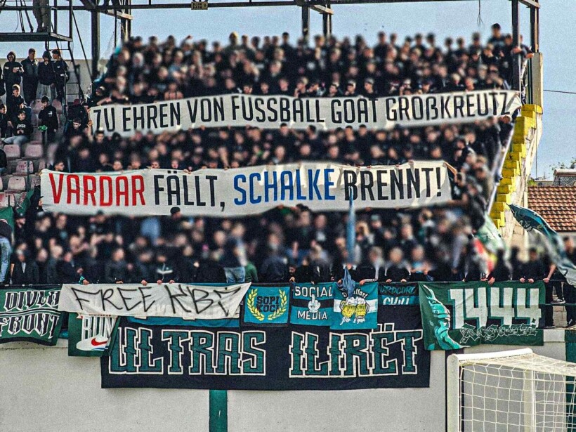 “Në nder të legjendës së futbollit Großkreutz – Vardari bie, Schalke digjet”, thuhej në banderolën e shfaqur nga Ilirët.