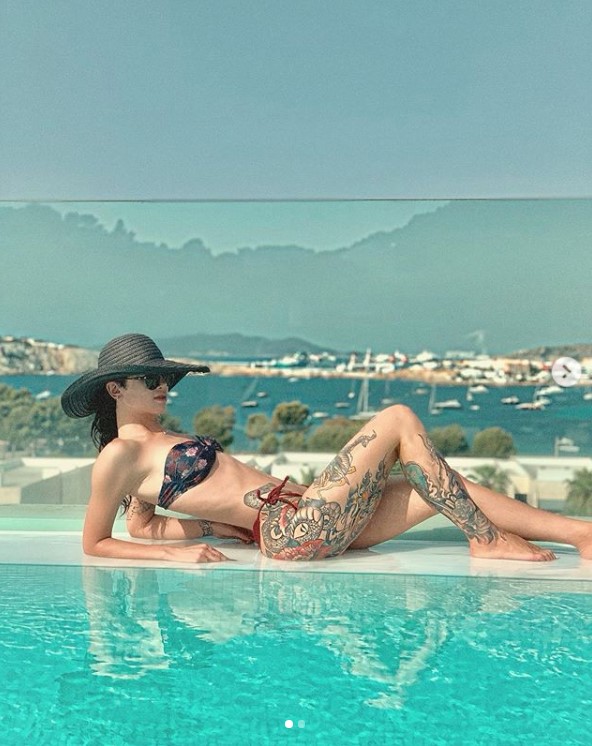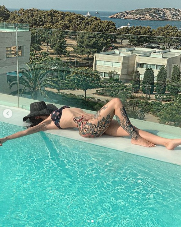 Ajo ishte veshur në bikni teksa po merrte rreze dielli, me këto imazhe vuri në pah format perfekte trupore dhe tregoi tatuazhet në trup.
