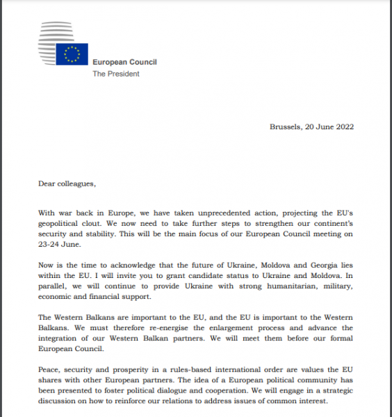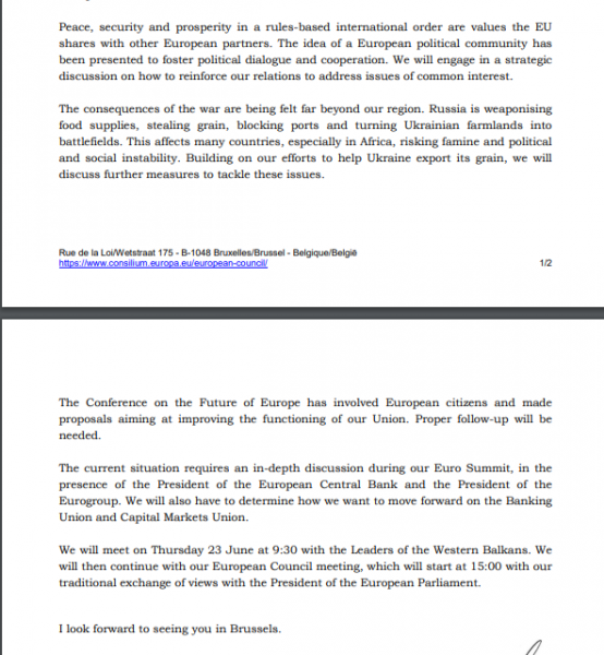 Përpara takimit të Këshillit Evropian, presidenti Charls Michel, ua ka dërguar një letër krerëve të Qeverive të shteteve anëtare, në të cilat përmend edhe rajonin e Ballkanit Perëndimor.