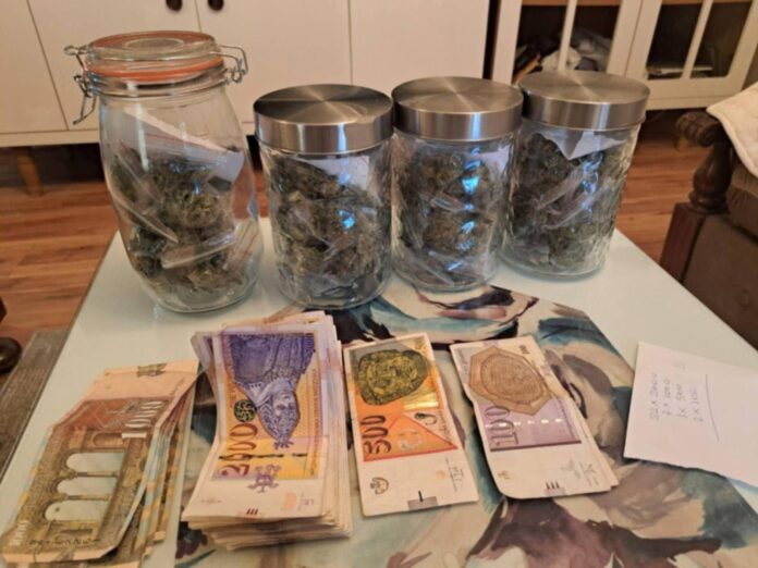 Gjatë një kontrolli në shtëpinë dhe hapësirat ndihmëse të tij, i kryer me urdhër gjykate, u gjetën dhe u sekuestruan katër kavanoza me marijuanë, para në denominacione të ndryshme dhe objekte të tjera për të cilat ka dyshim se janë të ardhura nga vepra penale.