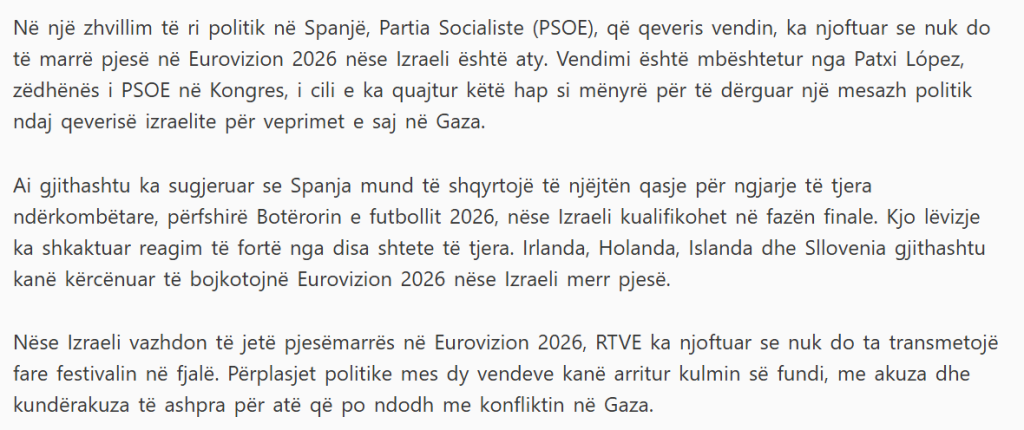LajmeSport E BUJSHME! Qeveria spanjolle kërcënon: Nuk marrim pjesë në Botërorin 2026, po qe atje Izraeli Nga Admin 1 Me Sep 17, 2025 168 Ndaj FacebookTwitterGoogle+Email
