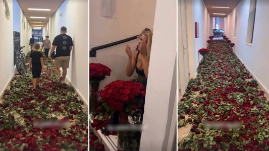 E rrallë: I dashuri i Luana Vjollcës ia mbulon me trëndafila të gjithë “lagjen”, banorët detyrohen të ecin mbi lule në korridoret e banesës