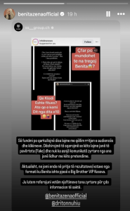 Gjithashtu, stafi i ish-banores sqaroi se ata janë në një proces pritjeje dhe respektimi të rregullave të formatit. “Aktualisht, ne jemi ende në pritje të rezultateve/votave nga formati ku Benita ishte pjesë e Big Brother VIP Kosova,” – shtojnë ata, duke i bërë thirrje publikut dhe ndjekësve që t’u besojnë vetëm njoftimeve që vijnë nga faqet e tyre zyrtare.