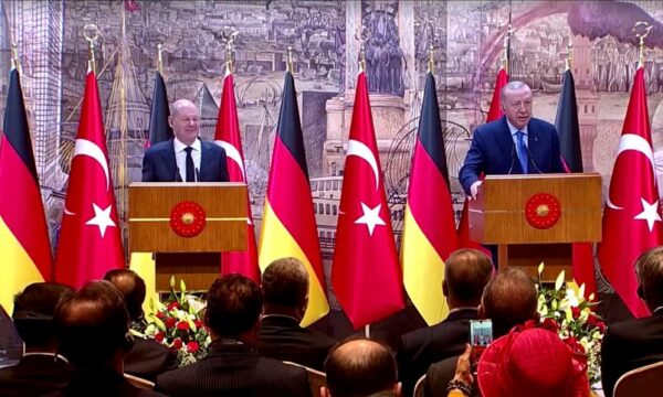 Presidenti i Turqisë, Recep Tayyip Erdogan, sulmoi Izraelin në sytë e Kancelarit gjerman Olaf Scholz, i cili ishte në Stamboll për një vizitë shtetërore.