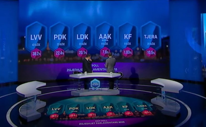 Zgjedhet 2025 Exit Poll-i i Klan Kosovës: VV 38.2 % PDK 22.4 % LDK 20.1 % AAK 7.6% Nga Admin7 Me Feb 9, 2025 105 Ndaj FacebookTwitterGoogle+Email Exit Poll-i i publikuar në Klan Kosova, menjëherë pas mbylljes së votimit i punuar nga Pipos është ky: VV 38.2 % PDK 22.4 LDK 20.1 AAK 10.5%
