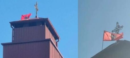 Flamuri shqiptar vendoset në kishën që gjendet në Kalanë e Tetovës