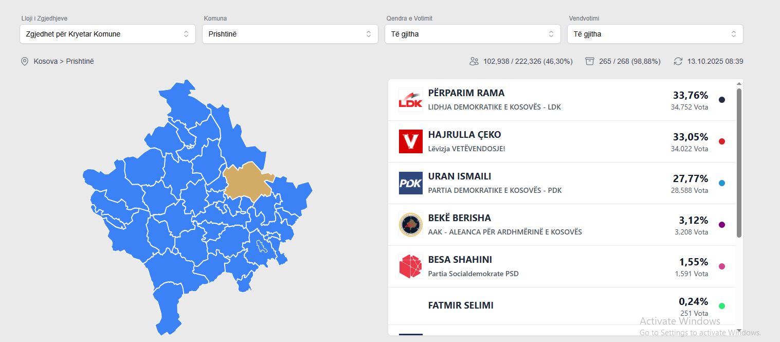 Garë e ngushtë në Prishtinë, dallimi mes Ramës e Çekut veç 730 vota