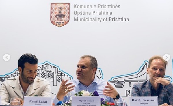 Pasi mbajti konferencë para medieve bashkë me kryetarin e Komunës së Prishtinës, Shpend Ahmeti, Lahaj foton të gjithë për koncert.