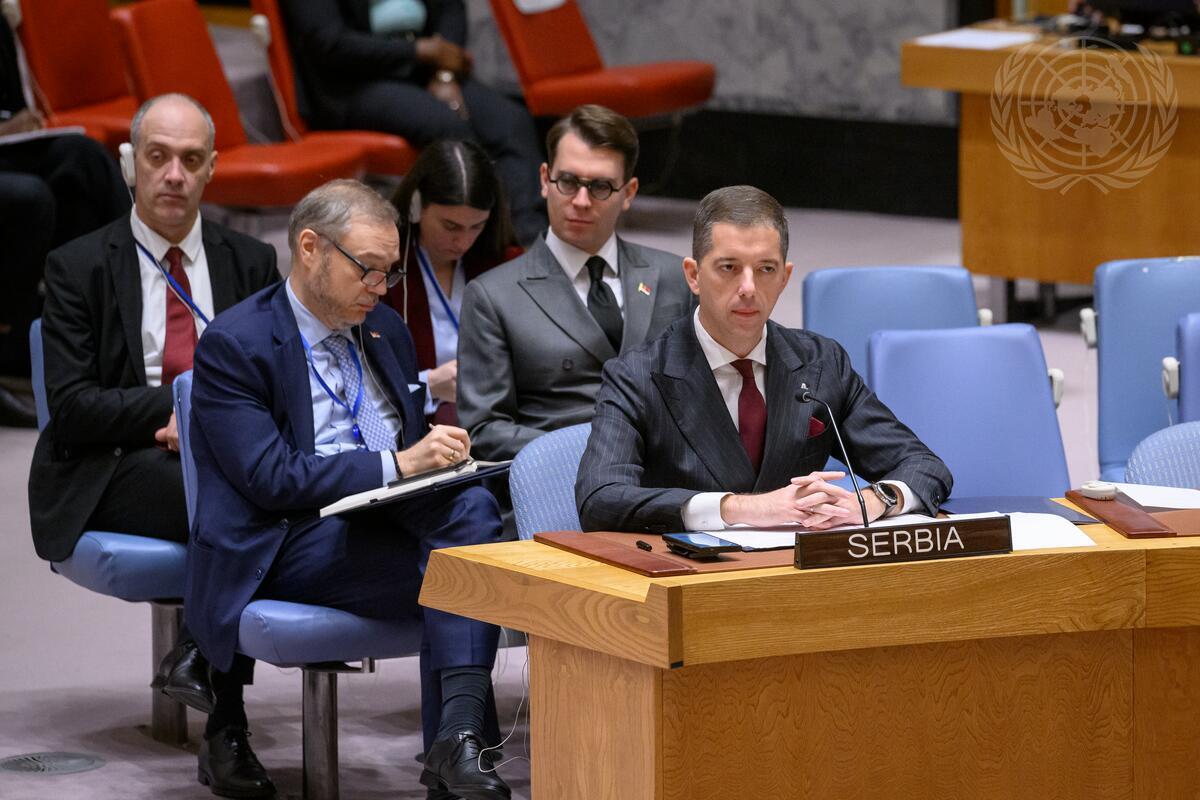 Ministri i Punëve të Jashtme i Serbisë, Marko Gjuriq e ka nisur fjalimin e tij në seancën e KS të OKB-së duke thënë se “të drejtat themelore të serbëve po injorohen dhe po gërryhen sistematikisht”.“Ajo që shohim sot nuk është kontekst abstrakt. Këtë vit festojmë 80 vjetorin e Kombeve të Bashkuara, një fanar shprese që doli nga hiri i luftës më të rëndë botërore me premtimin ‘Asnjëherë më, kurrë më ‘, por në dheun sovran të një shteti sovran të OKB-së, ky zotim testohet. Ka sulme të vazhdueshme, persekutim i pandalur, arreste arbitrare dhe dhune e pakontrolluar, sfidë e drejtpërdrejt ndaj parimeve të OKB-së. Serbia mirëpret raportin e sekretarit të përgjithshëm si hap modest, për një raport të balancuar, por të vërtetë”, tha ai.