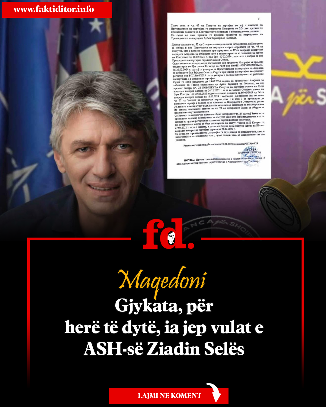 Siç duket telenovela e vulës së partisë ASH ka marrë fund pasi sot Gjykata e Tetovës ka konfirmuar lajmin e Klan Maqedoni ku vulat definitivisht i takojnë krahut të Ziadin Selës.