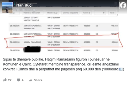 Ndërkohë, sipas të dhënave publike, Haqim Ramadani figuron i punësuar në Komuna e Çairit. Ky fakt ka hapur debat në opinionin publik dhe ka nxitur kërkesa për më shumë transparencë.