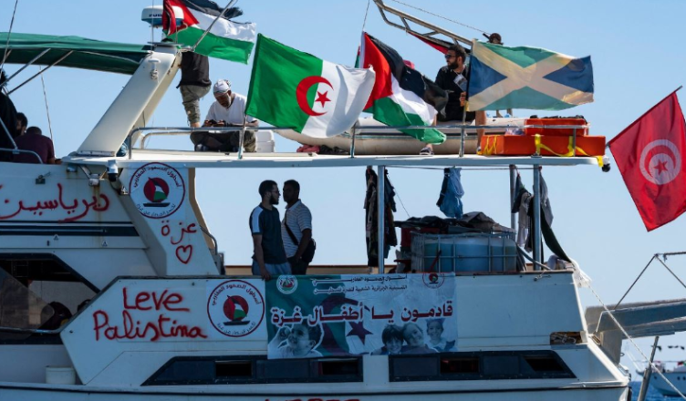 Kjo flotilje përfshin aktivistë nga shumë vende, mes tyre edhe aktivistja e njohur për klimën Greta Thunberg. Në një video të shpërndarë nga bordin e njërës prej anijeve, shihet një anije luftarake izraelite që supozohet se po i afrohej flotiljes.