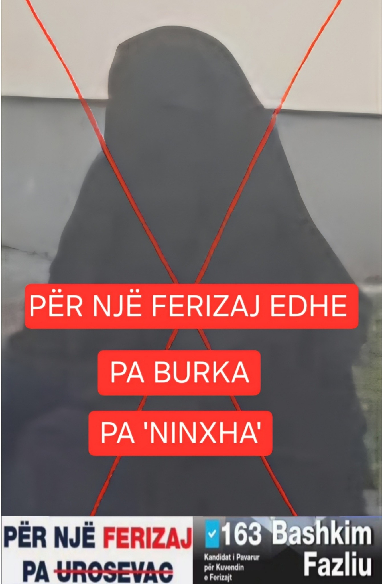 Kandidati që premton ndalimin e ‘burkave’ dhe ‘ferrxheve’ kërkon votat e ferizajasve