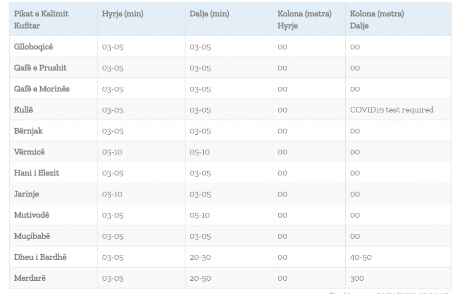 Kolonë 300 metra e pritje 50 minuta, gjendja aktuale nëpër pika kufitare