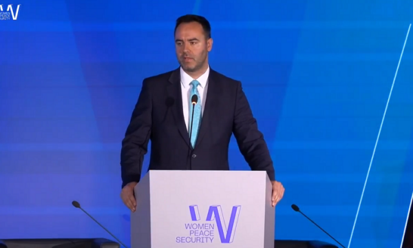 Kryeparlamentari Glauk Konjufca ka nisur fjalimin e tij në Forumin për Gratë, Paqen dhe Sigurinë me vrasjen e gruas në Pejë ku i dyshuar është bashkëshorti i saj.