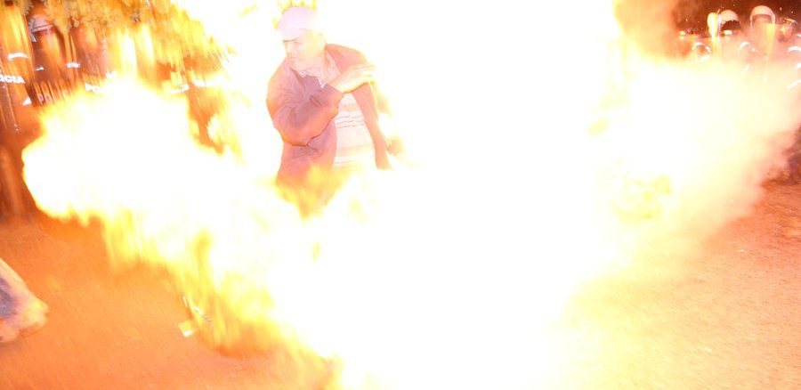 Unë u sula t’ia shuaj, bashkë me protestues të tjerë. U dogja dhe unë. Pas disa minutash, ku godisnim me ç’të mundnim, flaka u shua. Gjatë gjithë kësaj kohe, policët për asnjë çast nuk na hodhën ujin me të cilin shpërndanin protestuesit.