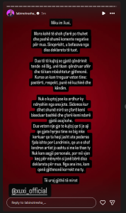 Këngëtari Labinot Rexha ka reaguar me një shkrim të gjatë në Instastory.