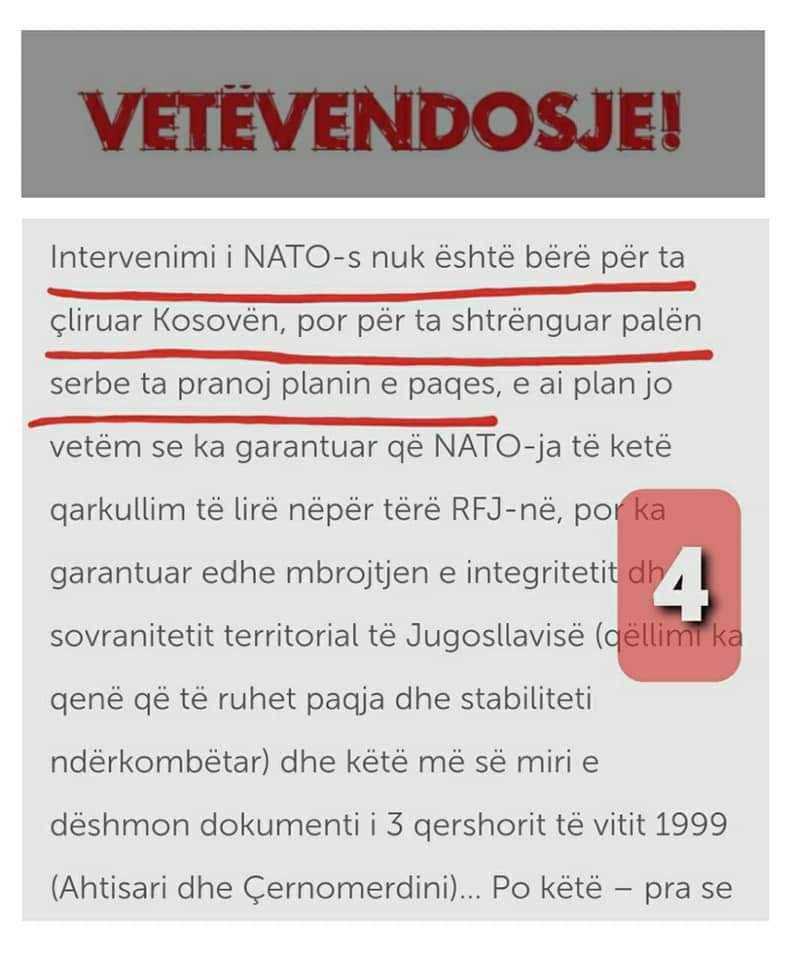 Pra, dy palë ishin kundër intervenimit të NATO-s, Serbia në njërën anë dhe Lëvizja Vetëvendosje në anën tjetër.