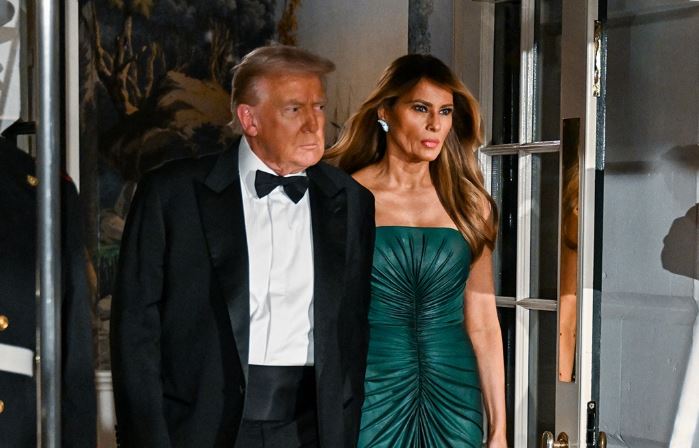 Melania, si çdoherë mahniti me stilin e saj. Ajo veshi një fustan të gjelbër pa rripa, duke qëndruar pranë bashkëshortit.