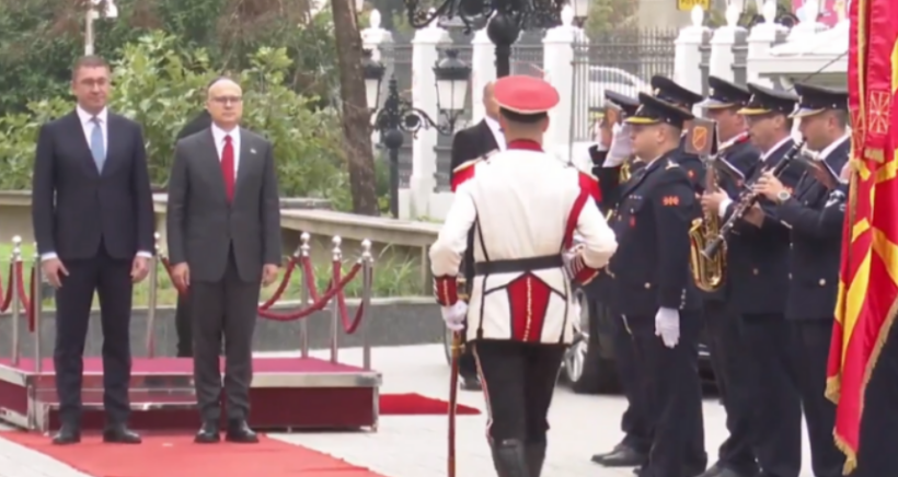 Kryeministri i Serbisë Millosh Vuçeviq ka arritur në Shkup, ndërsa është pritur nga kryeministri i Maqedoonisë së Veriut, Hristijan Mickoski, me nderime të larta shtetërore.