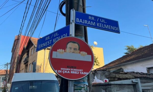 Në një shenjë që hy në kuadër të shenjave të “urdhrit të prerë për ndalim kalimi”, u vendos fotografi e Kurtit me mbishkrim që lidhet me zgjedhjet.