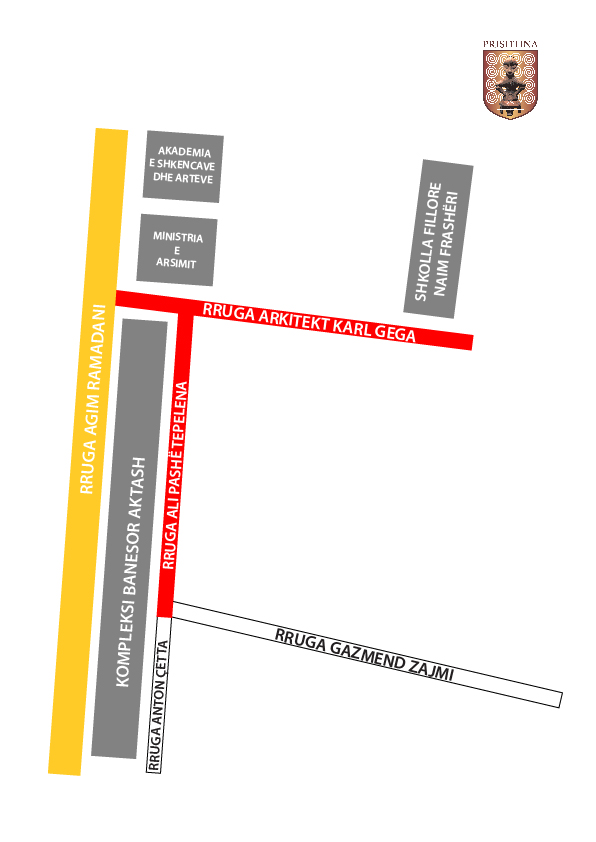 Komuna e Prishtinës ka njoftuar se prej nesër, 16 tetor deri me 31 dhjetor 2019, rrugët “Arkitekt Karl Gega” dhe “Ali Pashë Tepelena” do të jenë të mbyllura për qarkullim me automjete, me qëllim të realizimit të punëve në intervenimin e rrjetit të kanalizimit.