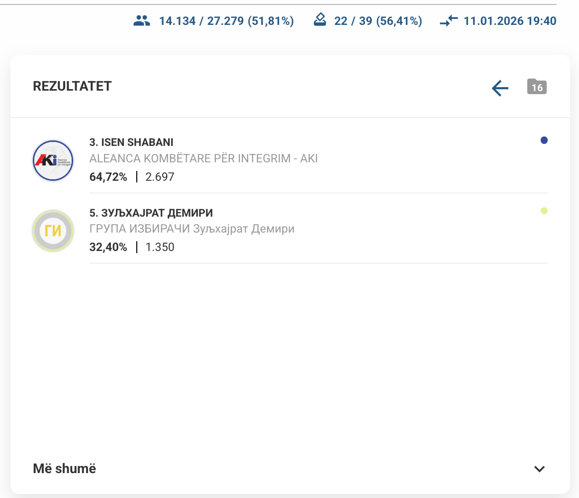 3. Isen Shabani – AKI – 2697 vota apo 64,72% të votuesve