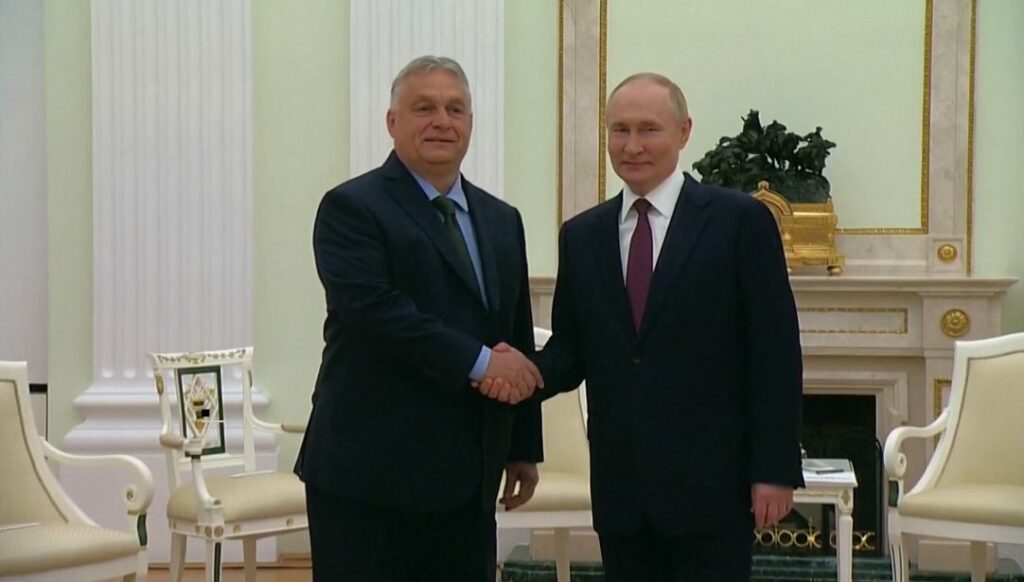 Media shtetërore ruse transmetoi pamjet të takimit të të dy udhëheqësve në Kremlin. Udhëtimi në Rusi është pjesë e një misioni diplomatik për të diskutuar paqen në Ukrainë, tha vetë Orbán para vizitës. Më herët ai shkoi papritur në Kiev të martën, për herë të parë që nga fillimi i luftës, ku u takua me presidentin ukrainas Volodymyr Zelensky.