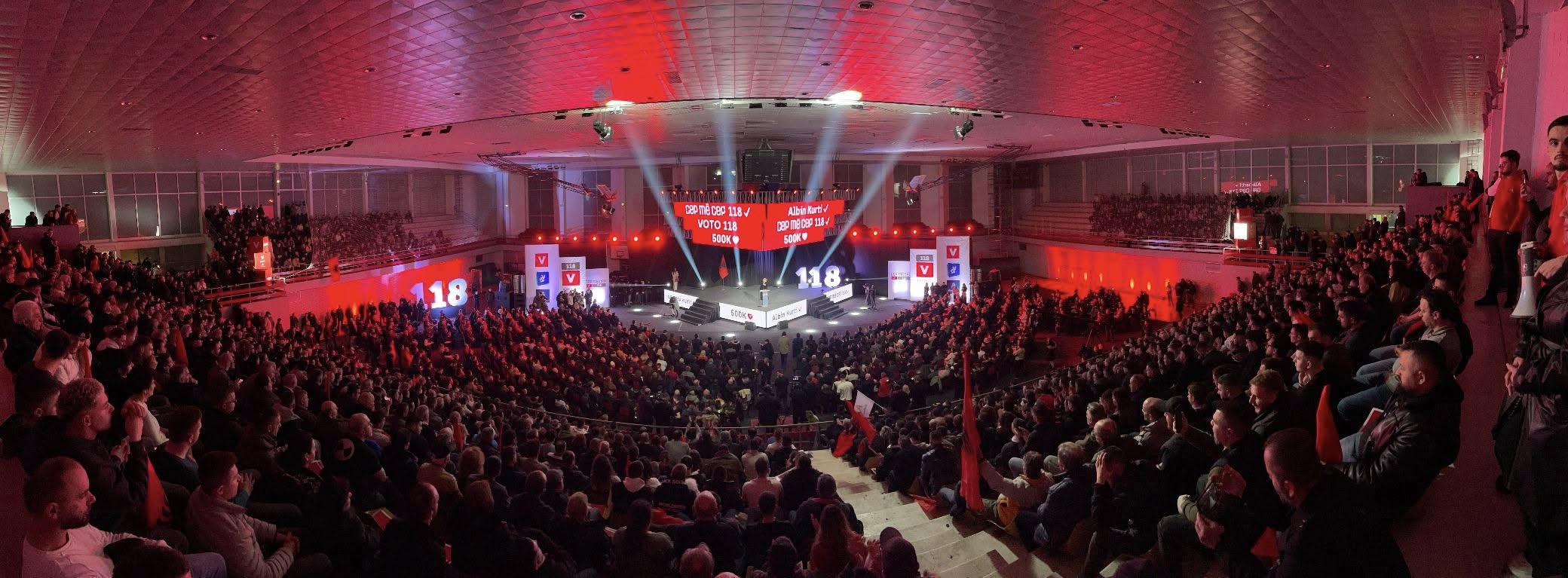Lëvizja Vetëvendosje ka nisur fushatën në Gjakovë, por në tubimin e mbajtur në palestrën “Shani Nushi” nuk është parë asnjë flamur i Kosovës.