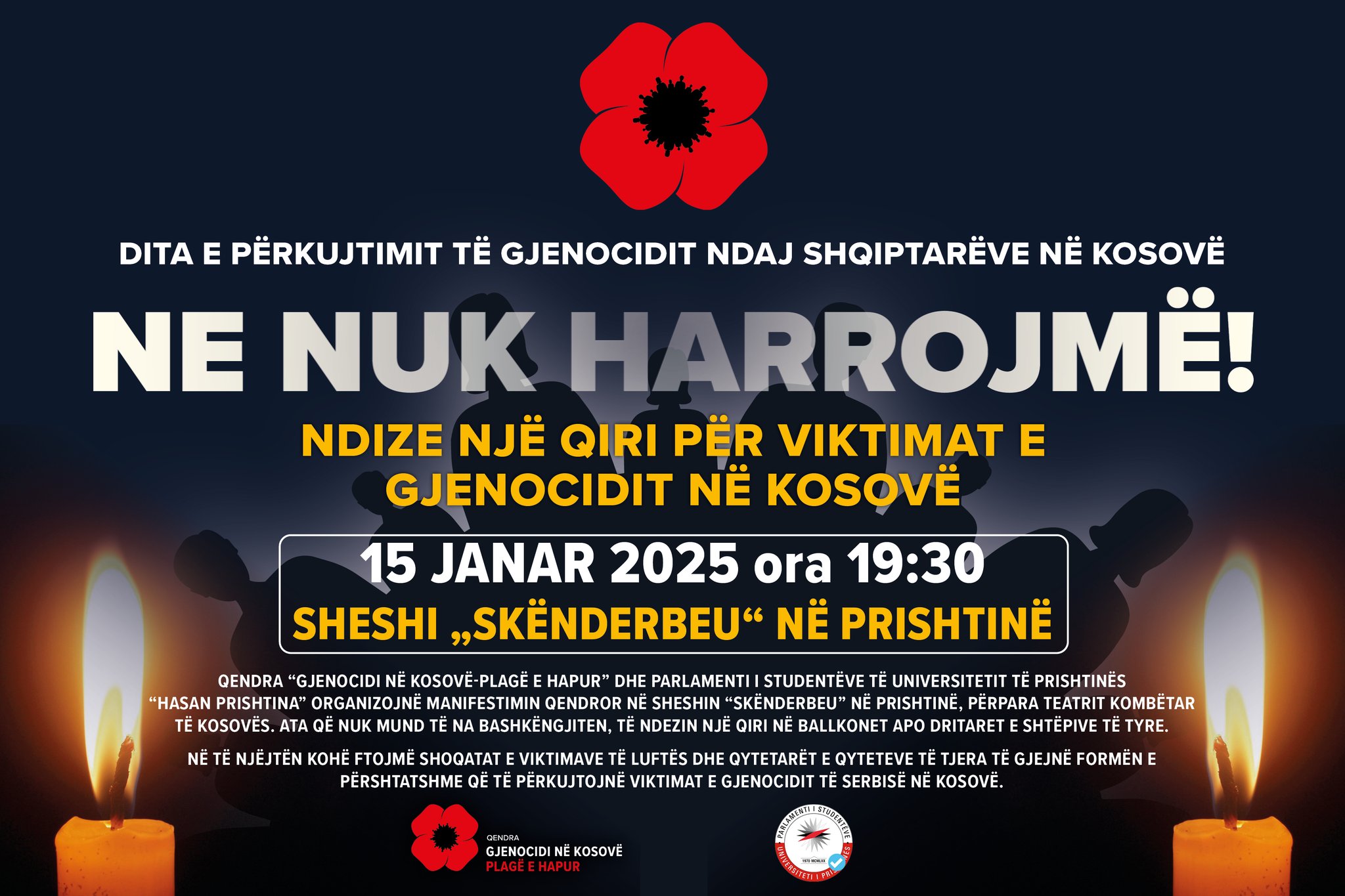 Më 15 janar, në 19:30, gjithkund në botë, do të ndizen qirinj për Ditën e Përkujtimit të Viktimave të Gjenocidit në Kosovë