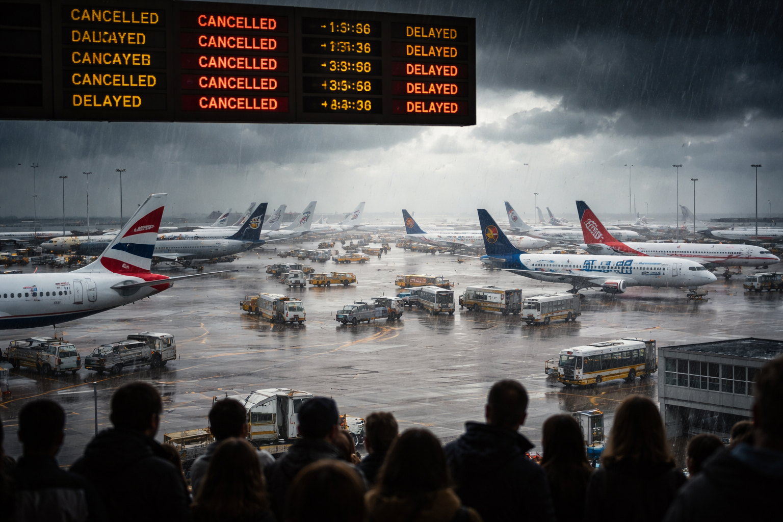 Në Aeroportin Heathrow të Londrës, u anuluan 22 fluturime nisjeje dhe 23 mbërritje, ndërsa 237 nisje dhe 63 mbërritje u vonuan.