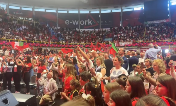 Salla duket e tejmbushur me bashkëkombës, të cilët kanë udhëtuar nga të gjitha zonat e Italisë drejt Milanos, për të marrë pjesë në këtë tubim.