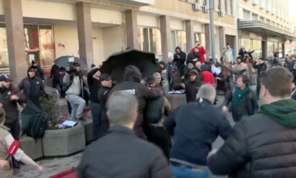 Ishte pikërisht njëri prej pjesëtarëve të sigurimit privat, që u fut në përleshje fizike me turmën e mbledhur para objektit