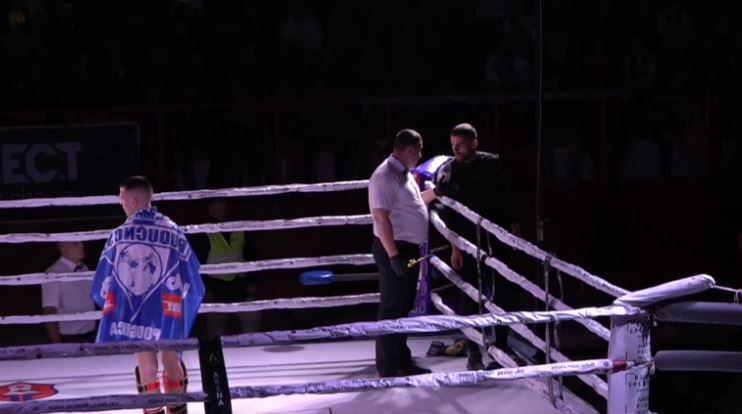 Siç raporton Radio Televizioni i Malit të Zi (RTCG), referi Fegja Trbonja e ka goditur me trofe në fytyrë trajnerin e kickboksierit nga Kosova, Art Mehmeti.