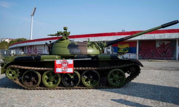 Tanku, i llojit T-55 i blerë nga depoja ushtarake, është parkuar pranë stadiumit si “atraksion”, sipas klubit serb, Zvezdës.