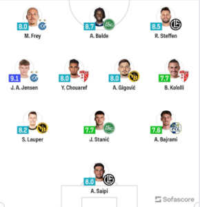Sport Tre shqiptarë në formacionin e javës në Superligën e Zvicrës Nga admin10 Me Apr 13, 2026 121 Ndaj FacebookTwitterGoogle+Email Tre lojtarë shqiptarë janë futur në formacionin e javës në elitën e futbollit zvicran. Bëhet fjalë për Amir Saipin, Benjamin Kolollin dhe Adrian Bajrami, shkruan Indeksonline Saipi u vlerësua me notën 8.0, Kololli me notën 7.7, kurse Bajrami me notën 7.6.