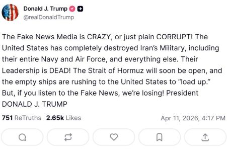 BotaTop Lajm Trump: Ngushtica e Hormuzit do të hapet së shpejti Nga admin2 Me Apr 11, 2026 92 Ndaj FacebookTwitterGoogle+Email Presidenti amerikan Donald Trump ka thënë se Ngushtica e Hormuzit “do të hapet së shpejti”. Këtë deklarim Trump e bëri përmes një postimi në rrjetin social ‘’Truth Social’’.