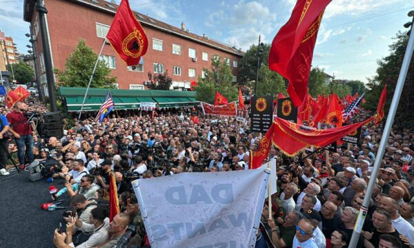 Protesta, e cila ka filluar nga ora 17:00, po shoqërohet me brohoritje të fuqishme nga masa, të cilët thërrasin “UÇK-UÇK”, si shenjë krenarie dhe qëndrese.